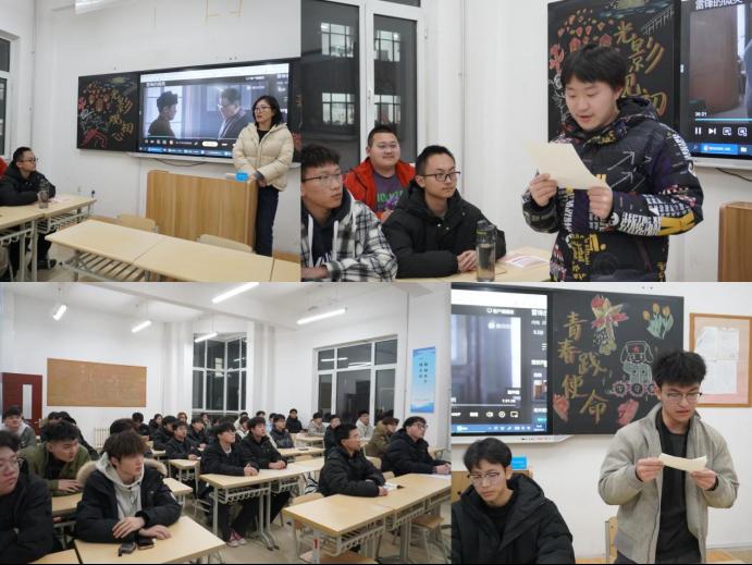 在雷锋精神分享会上24G161班赵俊贻结合随学校“金城龙事迹研学团”赴沈阳三台子街道牡丹社区开展研学与志愿服务的经历,以《学习金城龙同志 争做新时代雷锋》为题,讲述了“辽宁时代楷模”金城龙舍己为人、服务群众的感人事迹。来自雷锋第二故乡抚顺的24G131班张金宇24G141班张方轶,深情讲述雷锋城的精神传承与荣光,分享寒假期间走进雷锋纪念馆开展红色社会实践的所思所悟,令在场师生深受触动。分享会最后,师生共唱《学习雷锋好榜样》,将活动氛围推向高潮,也奏响了人人争做雷锋的青春强音。