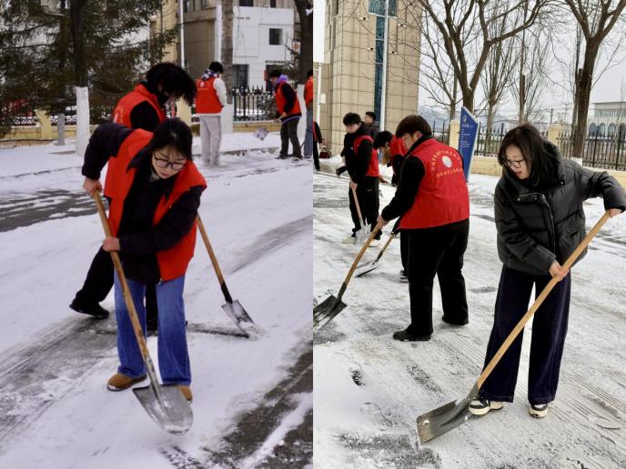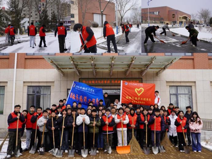 雷锋精神,重在践行。35日学雷锋纪念日当天,兴城突降大雪,校园道路积雪结冰。学院迅速组建“船海雷锋志愿服务队”,师生不畏严寒、分工协作,挥锹铲雪、破冰开路,全力保障师生出行安全用实干践行青年使命,用奉献诠释雷锋精神,成为雪天校园里最温暖的风景线。